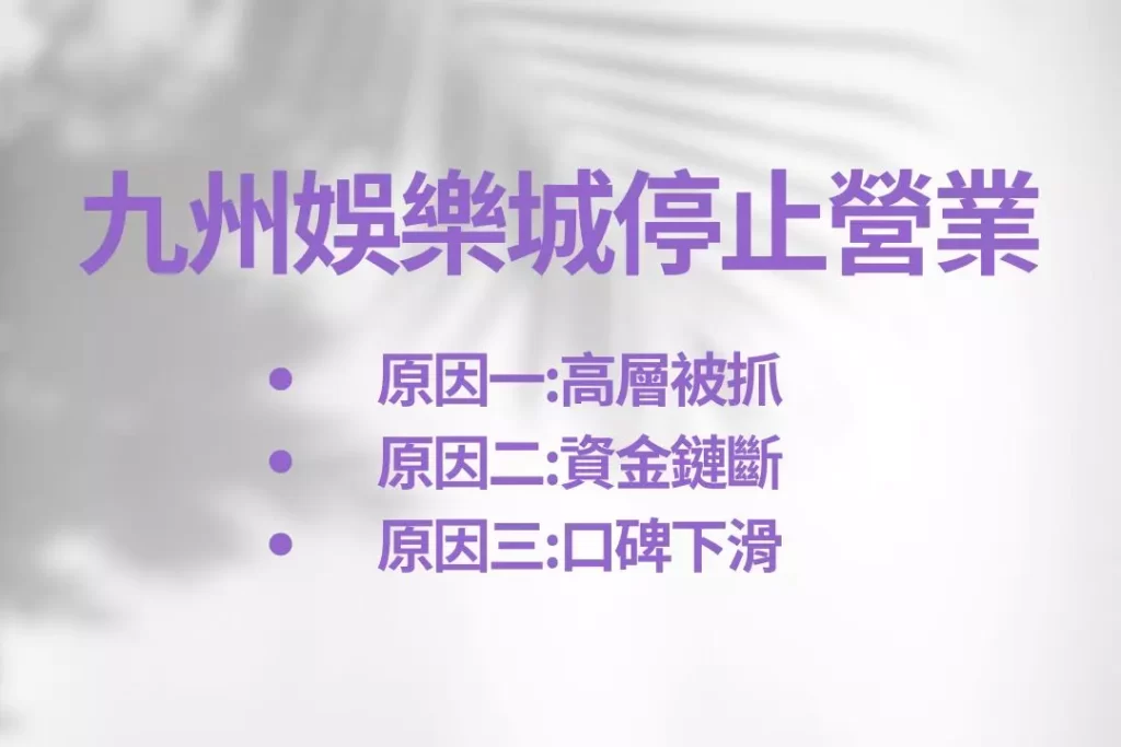 九州娛樂城停止營業的消息很突然,許多玩家應該都是措手不及,沒人敢相信九州娛樂城停止營業,畢竟九州娛樂城可以說是業界的龍頭,當然九州娛樂城停止營業的消息最後也是被證實出來,在九州娛樂城官網都已經出了公告,當然九州娛樂城停止營業的主要原因為和,小編查詢了各大論壇以及社群討論九州娛樂城停止營業的消息,最後得出這三點原因最有可能!