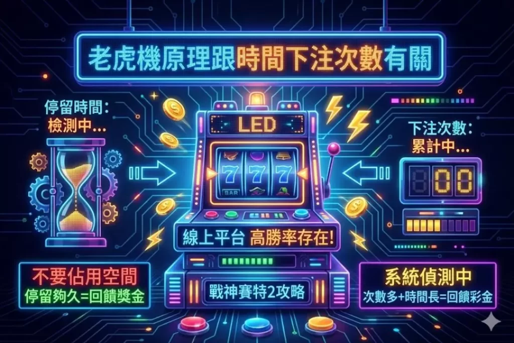 老虎機原理其實很簡單,首先會偵測玩家的停留時間,這一點大家都會觀察到,只要你太久沒有下注就會被踢出遊戲間,不要讓你占用其他玩家遊戲的空間,所以同時也會偵測你在該機台的停留時間夠久,這樣的好處就是會回饋獎金出爐,當然還會針對你下注的次數為主。