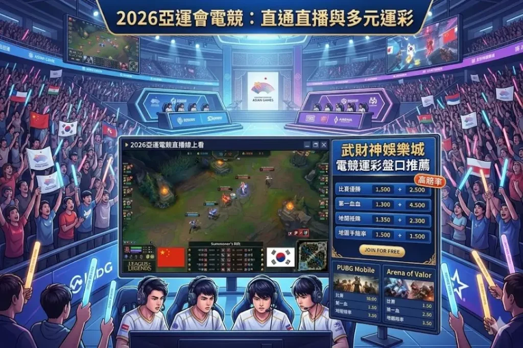 首先「武財神娛樂城」提供的就是2026亞運電競直播線上看,註冊「武財神娛樂城」完全免費、觀看賽事也是完全免費,除此之外這裡提供的不僅只是亞運轉播,只要你想的到的電競賽事或者是體育賽事等,在「武財神娛樂城」這平台都可以免費的讓玩家觀看。